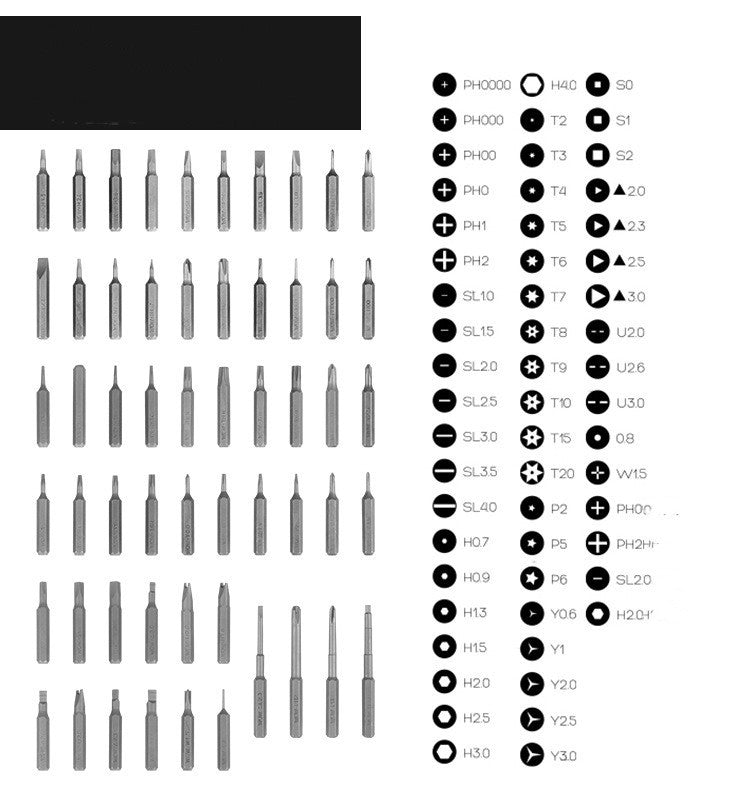 Portable storage box x1 s2 gold steel bit x56 1f+host x1 magnetic positioning plate x1 DOCK base x1 magnetizer x1 disassembly triangle x1 screw storage bottle x1 with ring suction cup x1 USB charging cable x1